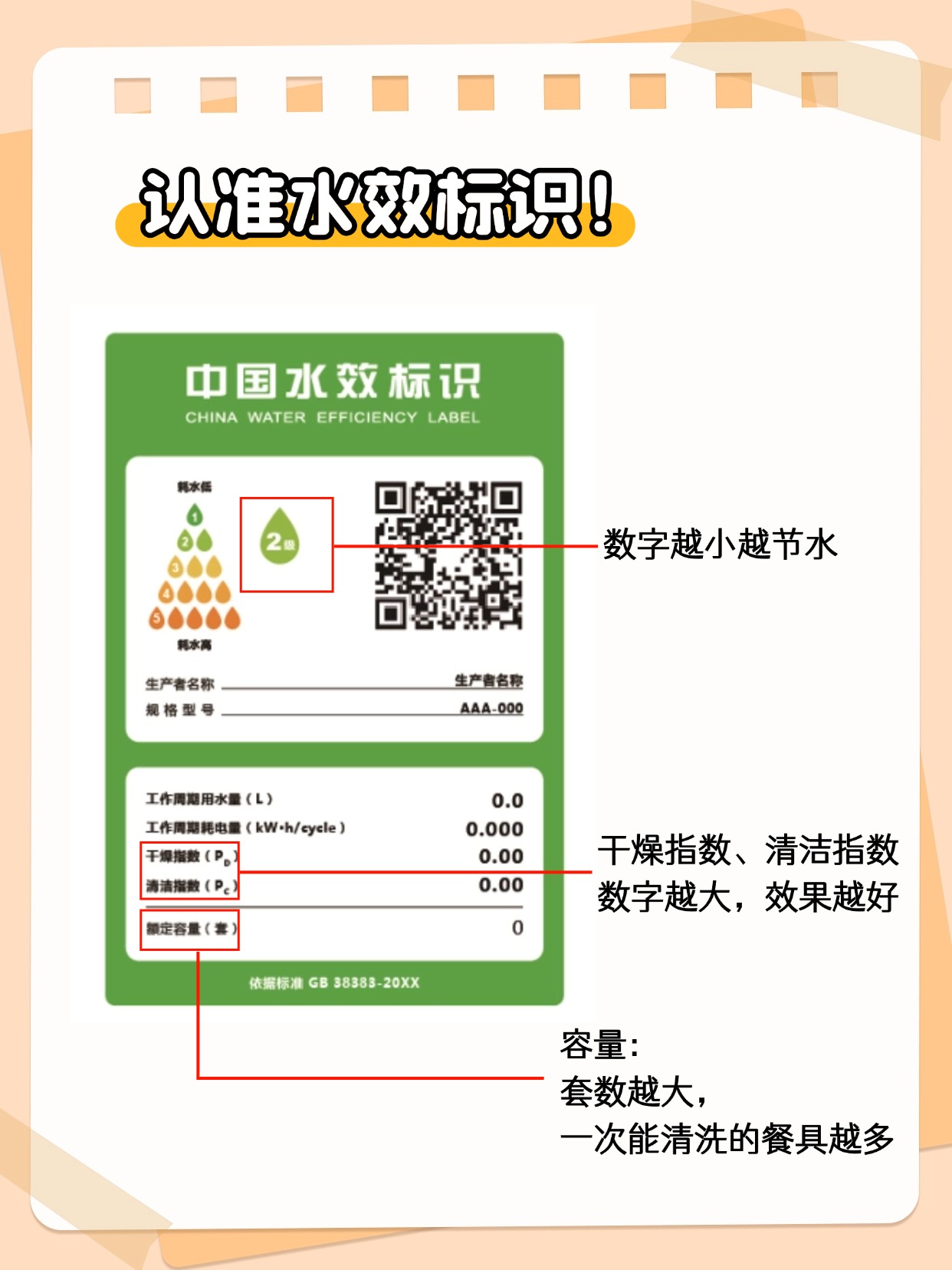 •能效:洗碗机贴有水效标识,等级从1级到5级,1级为最优,既省水又省电!水效标识上还会标注清洁指数和干燥指数,这两个数值越高,代表清洁和烘干的效果越好。标准要求干燥指数不能低于0.86,清洁指数不能低于1.12哦~