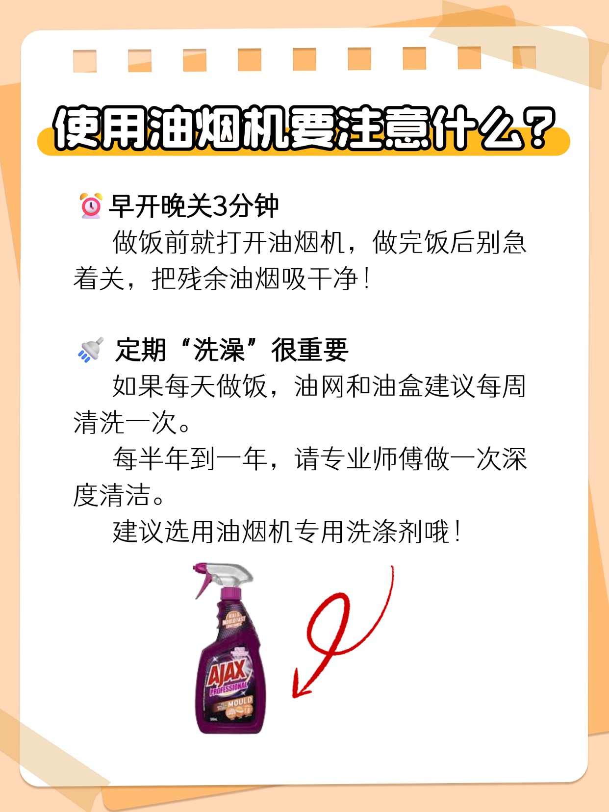 •✅ 选择合适清洗剂:清洁油烟机时,建议选择油烟机专用清洗剂,强力清除油污,或者也可以使用中性洗洁精!