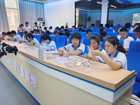 科普展示厅内,同学们亲自动手“制作”磁悬浮列车手工,探索高铁的奥秘和科学原理。