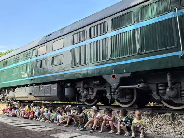 铁路园内陈列的历史机车立刻吸引了所有目光,小朋友们瞬间变身为“好奇宝宝”,围着志愿者问个不停,在实物观摩中直观感受了中国铁路的厚重历史。