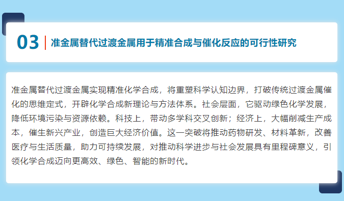 中国化学会推荐“准金属替代过渡金属用于精准合成与催化反应的可行性研究”入选“2025十大前沿科学问题”