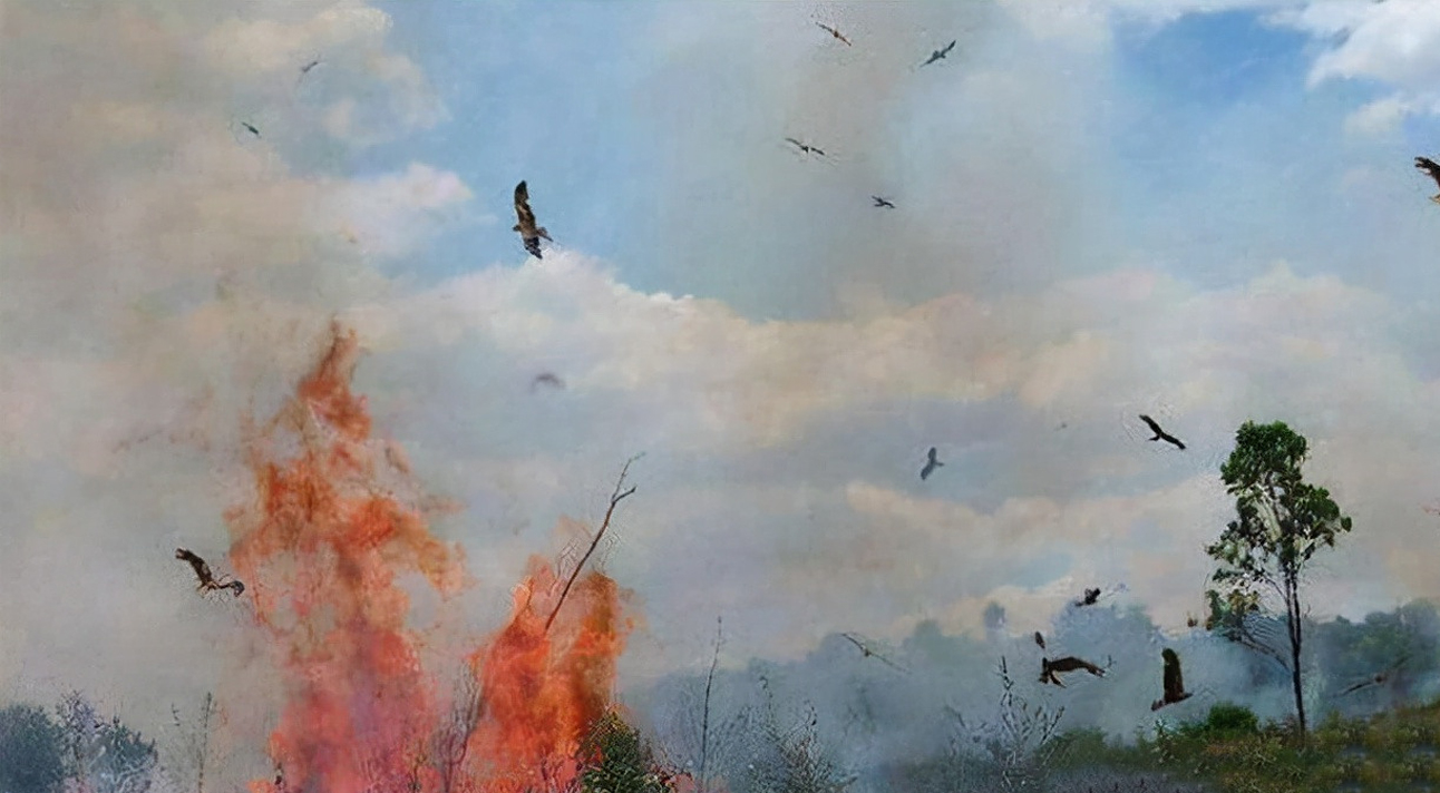 火灾规模越大,火势持续越久,黑鸢便能获取到更为丰富的食物资源。然而火越小,食物就越少,竞争也越发激烈,这时黑鸢就会像人类一样,为了私利而采集火苗,并将未熄灭的树枝叼起,扔进干燥的树林或杂草丛中,故意引发火灾。黑鸢的这种“放火”行为对当地生态系统产生了深远的影响。2019年澳大利亚森林火灾中,黑鸢被认为对火灾扩散和动物死亡数量起到了推波助澜的作用。