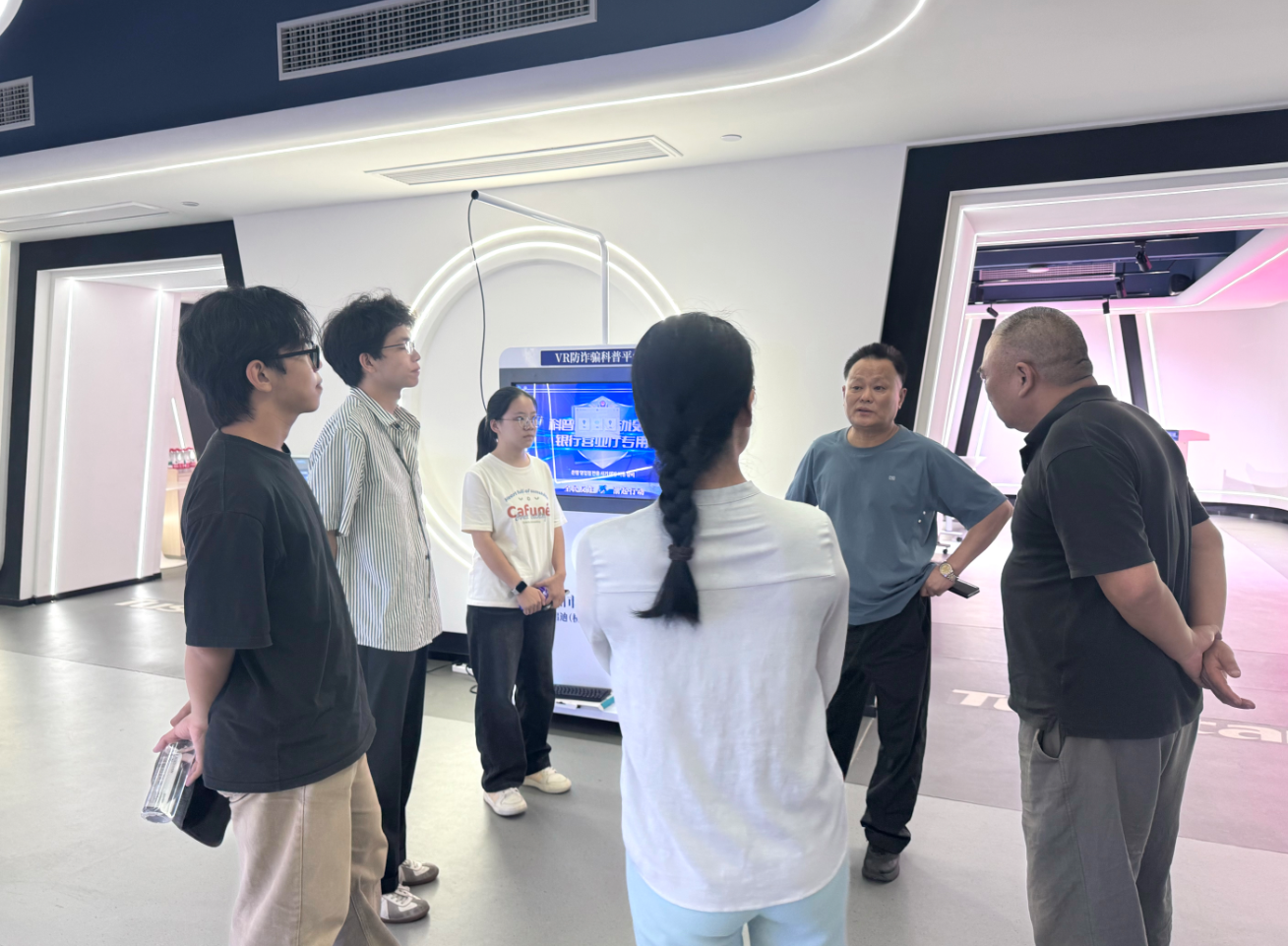 在体验馆内,师生们沿着“知诈、识诈、揭诈、防诈、反诈”五大篇章展区有序参观,各类创新反诈互动设备成为学习“利器”:通过反诈机器人查询最新诈骗手法,在反诈抢答机上检验知识掌握度,戴上VR反诈一体机“亲历”刷单返利、冒充客服等常见骗局,借助反诈万花筒直观拆解诈骗套路,在反诈剧场集中观看定制化反诈宣传片——这些体验内容精准契合大学生常见的诈骗场景,尤其是针对新生易踩的“校园贷”“二手交易诈骗”等陷阱,通过模拟情境让学生提前“踩坑”、学会“避坑”。从“被动听案例”到“主动探套路”,沉浸式体验让师生们对诈骗风险有了更直观的认知,也逐步掌握了“识别—应对—防范”的全流程技巧,为新生反诈必修课提供了可落地的实践场景。