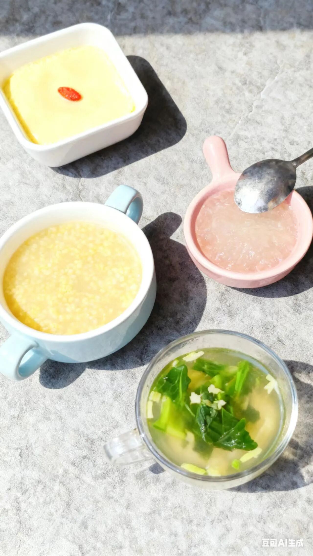1-3天(不适明显期):以清淡流质或半流质为主,减轻肠胃负担。推荐小米粥、蔬菜汤(去渣)、鸡蛋羹、藕粉;恶心时少量多次吃(每天5-6餐),避免过饱。
