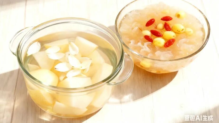 解口干:雪梨1个(切块)+百合10g煮水(润肺生津);银耳1小朵+莲子10g+少量冰糖炖羹(胶质润黏膜)。