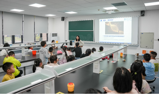在科普讲座环节,生物标本馆主任、生命科学学院黄皓副研究员以《长江的微笑天使——江豚》带领孩子们认识江豚骨骼的奥秘,揭示长江精灵的生态密码;唐璐璐副教授通过《认识一朵花》揭示花色背后的科学原理;夏露副研究员带来的《身体里的“遗传密码”,侦探小队出发》激发孩子们对DNA与遗传学的浓厚兴趣;范亮亮副教授的《多种多样的细胞》则将复杂的生命奥秘以生动的方式呈现。科学大咖们将前沿知识转化为通俗易懂的内容,现场气氛热烈,掌声不断。