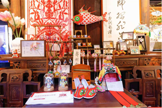 活动首章“东风更放花千树”,如同一幅徐徐铺展的徽州非遗画卷,将古老工艺的厚重与创意巧思的灵动完美结合。在校园展厅内,傩戏面具静静陈列,色彩浓烈的纹样间,仿佛仍能看见古徽州祭祀祈福的庄重场景;木刻版画以刀为笔,在方寸木版上复刻徽派建筑的飞檐翘角与江南水乡的烟雨朦胧;绒花匠人以蚕丝为料,指尖翻飞间,一朵朵色泽温润的绒花绽放;民俗服饰上的刺绣图案蕴含着徽州女子的细腻情感。徽州汪满田鱼灯通体流光,鱼鳞纹路细腻逼真;大型剪纸作品以宏大篇幅再现徽商的繁华盛景。手工艺体验区的师生们在葫芦上精雕细刻,将徽州山水、民俗故事化作指尖的立体诗篇。每一件作品、每一次创作,都是非遗与青春的对话,是传统与创新的交融。