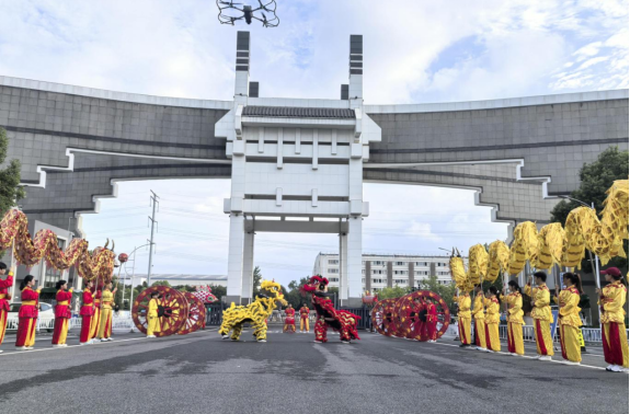 当日暮降临,校园内响起锣鼓声,活动第二章“玉壶光转舞鱼龙”拉开帷幕,将非遗的热闹与活力推向高潮。从学校光启堂出发,由师生组成的民俗巡游队伍缓缓前行。打头的鱼灯队,数十盏鱼灯首尾相接,仿佛一群灵动的游鱼穿梭在校园林荫道上;舞龙舞狮队伍中,金龙腾跃,雄狮摇头摆尾,展现出中华传统文化的精气神。校园内洋溢着浓厚的民俗氛围。当队伍最终汇聚到日月广场时,师生们与鱼灯、龙狮近距离互动,感受着非遗民俗带来的热烈与喜悦。此刻,工科校园的严谨与民俗活动的热烈完美融合,传统民俗在青春校园里焕发出新的生机。