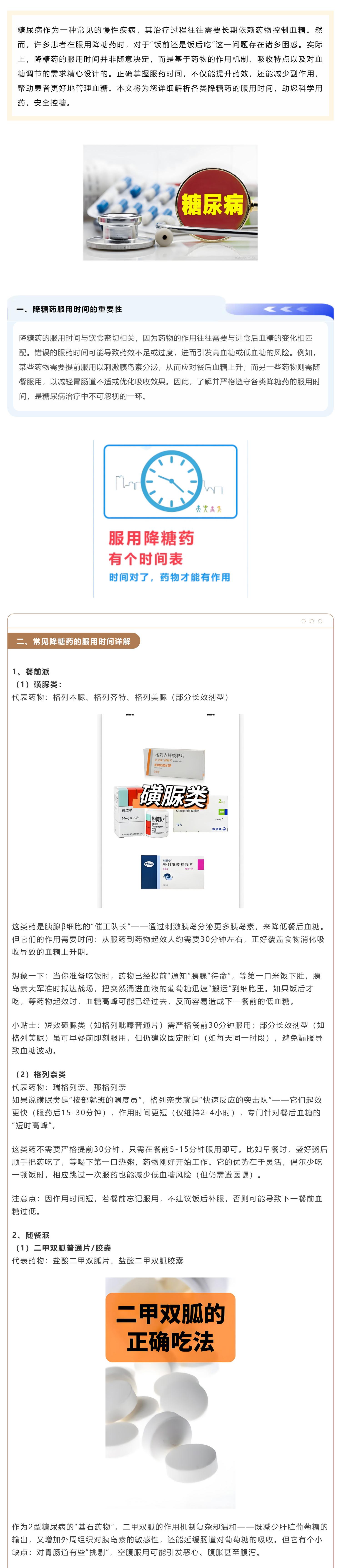 降糖药 “饭前吃还是饭后吃”?医生的 “服药时间对照表”