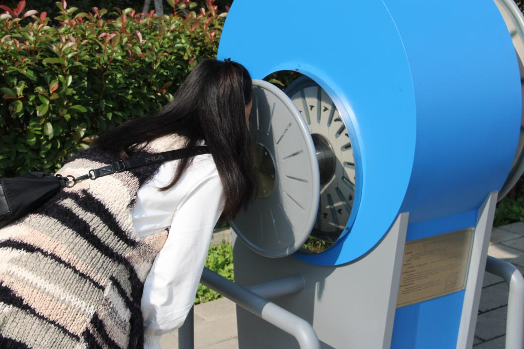 沿途,一系列互动展项吸引大家亲身尝试。钢板琴被敲击出清脆的音阶,体验者在聆听中感悟声学原理;快速摇动“会飞的小鸟”装置,视觉暂留现象让静态图像“飞”了起来。“我们的户外展项追求‘一物多用’,既是科普载体,也是休憩设施,让科学触手可及。”王云翔说。