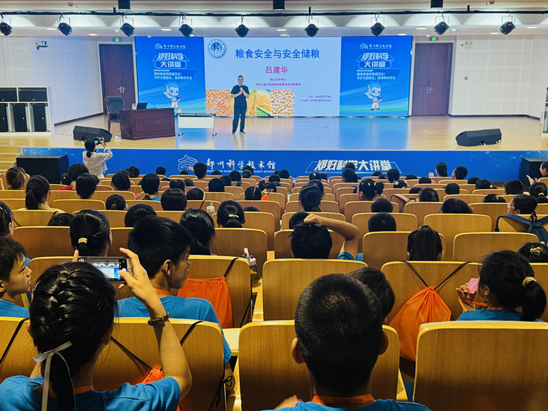 为积极推动科技创新与科学普及深度融合,点燃青少年探索科学的热情,7月18日,我院精心策划的“守卫大国粮仓 保障粮食安全”主题科普讲座在郑州科技馆火热开讲。本次活动特别邀请到浙江大学校友吕建华教授,他以生动鲜活的讲述带领现场学生化身“粮食安全卫士”,共同开启了一场探秘“大国粮仓”的奇妙科技之旅。
