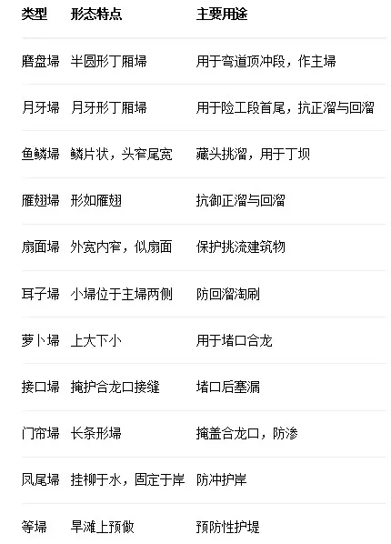 至清代中期,埽工已发展出多种类型,按其功能与形态可分为: