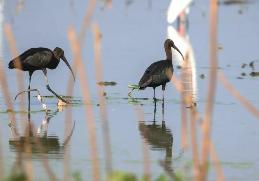 国家一级保护动物彩鹮在石狮湿地公园“过中秋”(杨思盾/图)