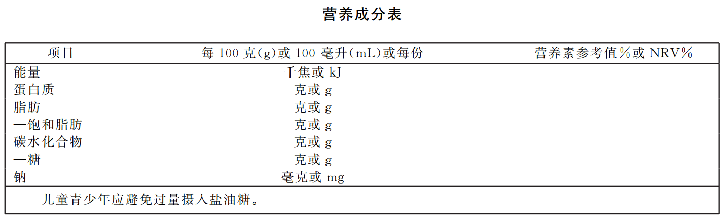 图6 GB 28050—2025预包装食品营养标签示例(仅标示强制内容)