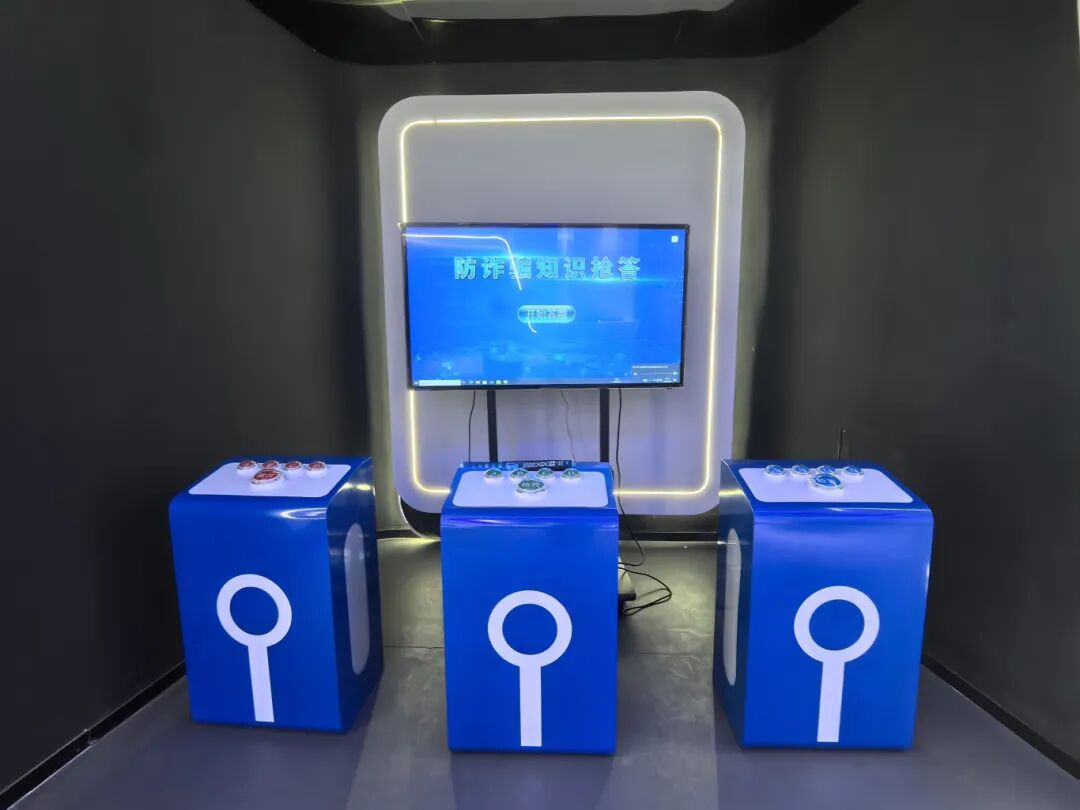 科技反制为银行反诈提供破局之道。AI反诈机器人可实时互动,内置海量反诈题库,一旦触发“陌生转账”“可疑链接”等关键词即推送预警;VR 反诈一体机模拟 “冒充银行人员”“贷款诈骗”“两卡诈骗” 等场景,让用户沉浸式感受骗局话术与操作陷阱,教育效果远胜宣传单;反诈万花筒以二维动画拆解骗局,搭配知识测试强化记忆。这些设备让反诈知识从 “被动接收” 变为 “主动体验”,真正实现入脑入心。