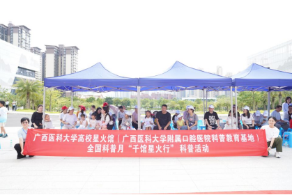 2025年9月是首个全国科普月。在全国科普月期间广西医科大学高校星火馆(广西医科大学附属口腔医院科普教育基地)在五象院区成功举办全国科普月·“全国爱牙日”多主题联合宣传活动。活动以“口腔健康全身健康——减糖控体重,护牙促健康”为主题,通过科普宣讲、亲子互动、健步走、现场口腔检查等多种形式,向公众传递“口腔健康与全身健康息息相关”的科学理念。