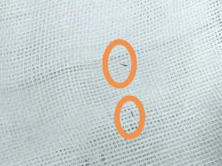 (▲显微镜下可见数根板栗刺嵌入角膜,其中1根穿通角膜到达虹膜,医务人员手术取出板栗刺)