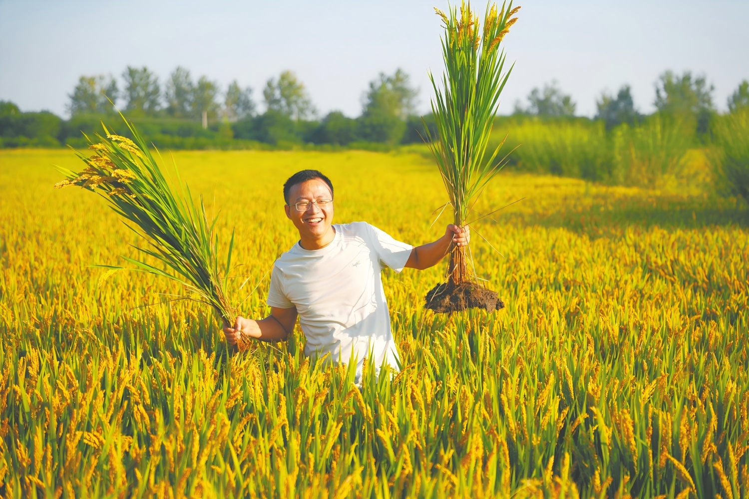 金秋十月,在南京市浦口区的汤泉农场,2000亩示范田里稻浪鎏金、穗影摇曳、稻香扑鼻,中国工程院院士、南京农业大学有机肥和土壤微生物研究团队负责人沈其荣教授踏着田埂,俯身金黄的稻海间,指尖轻抚稻叶,仔细查看水稻长势,示范田水稻在基质育苗时全部使用了促根型哈茨木霉菌剂。
