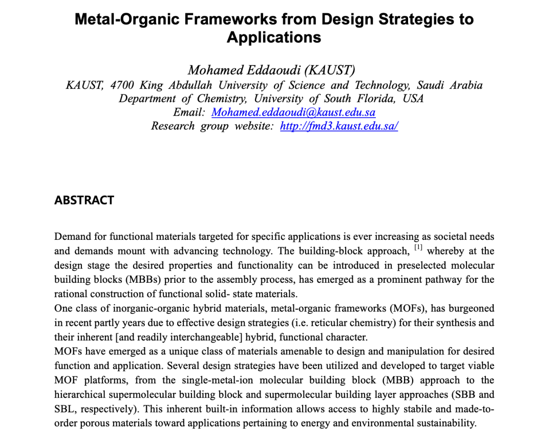 1999 年,被称为「MOF 之父」Omar Yaghi 创造了一种非常稳定的 MOF(MOF-5),并证明可以通过合理的设计对其进行修改,从而赋予其全新的性能。MOF-5 作为代表性金属有机框架材料,在氢气储存、气体吸附等早期研究中被广泛应用。他提出的「可设计框架(reticular chemistry)」理念,则推动了化学合成进入结构可预测时代。基于此,Mohamed Eddaoudi 同期发表了「Metal-Organic Frameworks from Design Strategies to Applications」等论文成果,推进 MOF-5 等早期高比表面积 MOF 的实验与合成化学。