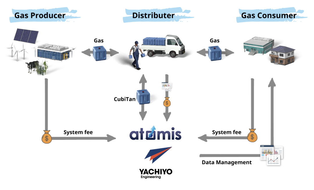 自 2022 年以来,北川进担任科学顾问的 Atomis 株式会社就联合八千代工程株式会社,基于 MOF 技术,致力于开发一种名为「智能燃气网络」的新能源燃气分配系统,希望利用 MOF 分子结构对沼气、天然气等难以控制的甲烷气体在常温下以纳米尺度进行吸附和释放,而无需依赖管道基础设施,实现气体轻量化运输。