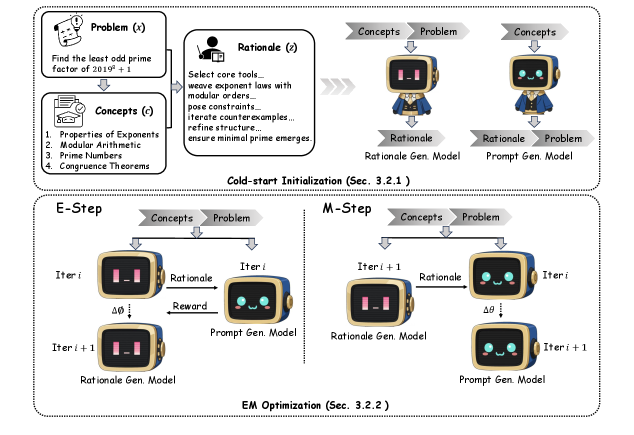 本文提出了 PromptCoT 2.0——一种可扩展的框架,该框架用期望最大化(EM)迭代循环替代了人工设计的启发式规则,通过迭代优化推理过程来引导提示的构建。该方法生成的问题不仅更具挑战性,且在多样性上也优于以往的语料库。