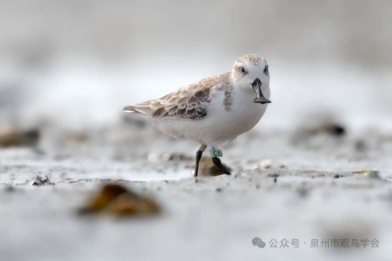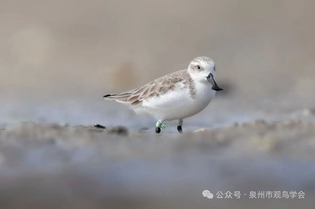 2025 年 1 月的全国同步调查再传捷报:泉州围头湾单次记录到 13 只越冬勺嘴鹬,含 3 只环志个体,这一数据不仅刷新本地单时观测纪录,更使泉州勺嘴鹬种群占全球总数的比例进一步提升。