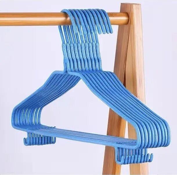 这里就要说说“粉末浸塑工艺”了。塑胶衣架主要由铁丝骨架和塑料涂层构成。液体浸塑工艺是让塑料先加热熔化去配合衣架,而粉末浸塑工艺则是让衣架先加热去配合塑料粉,你可以想象成铁丝衣架在塑料粉中打滚……(忍不住想到了驴打滚)。