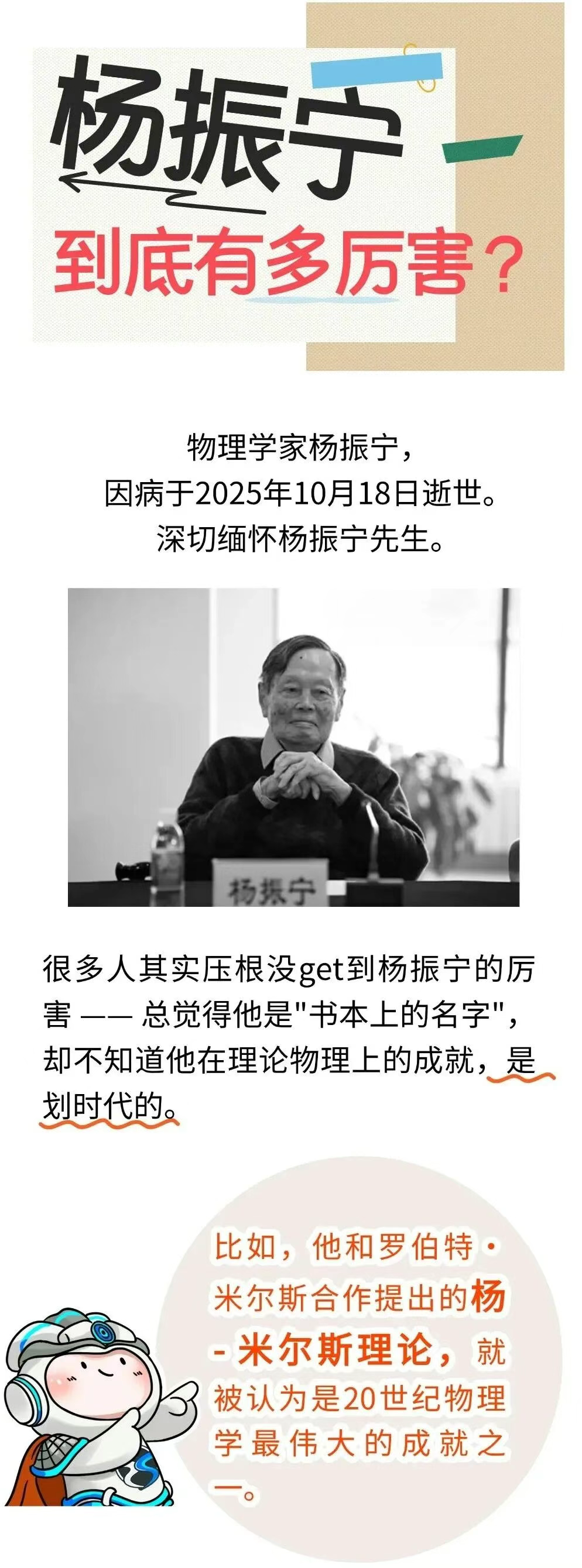 图文简介: 当“杨振宁”这个名字被提起,有人想起的是诺奖光环,有人记得的是跨界争议,却少有人真正读懂他藏在复杂公式背后的伟大——那是足以改写人类对宇宙认知的智慧,是跨越世纪的家国热忱。