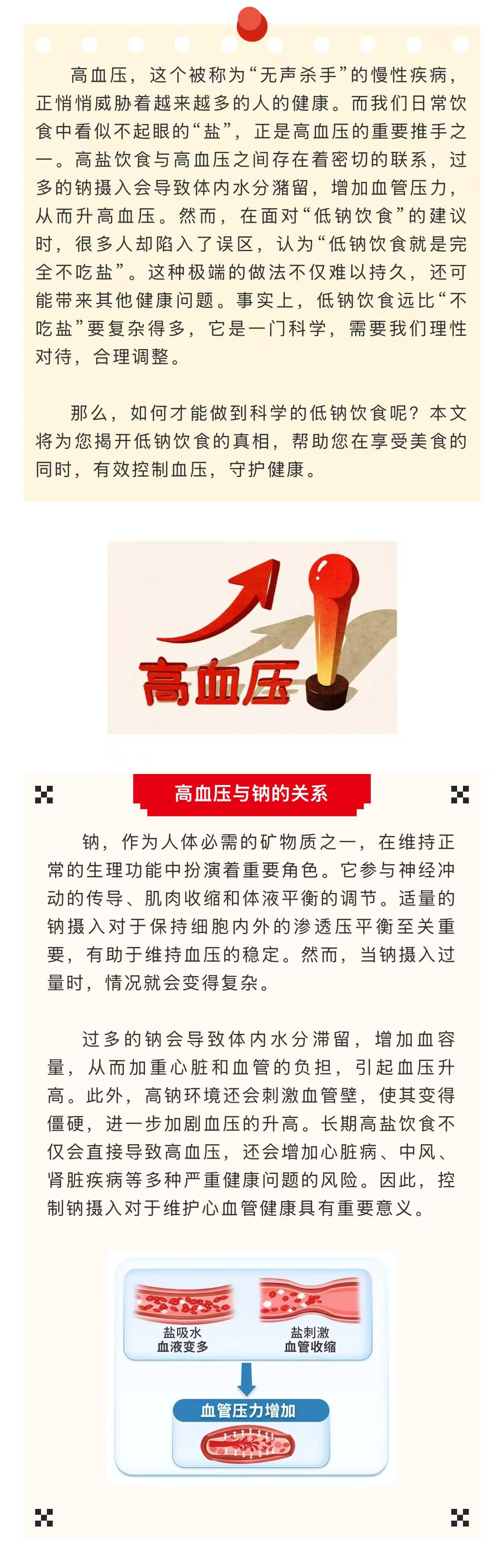 图文简介: 高血压,这个被称为“无声杀手”的慢性疾病,正悄悄威胁着越来越多的人的健康。而我们日常饮食中看似不起眼的“盐”,正是高血压的重要推手之一。