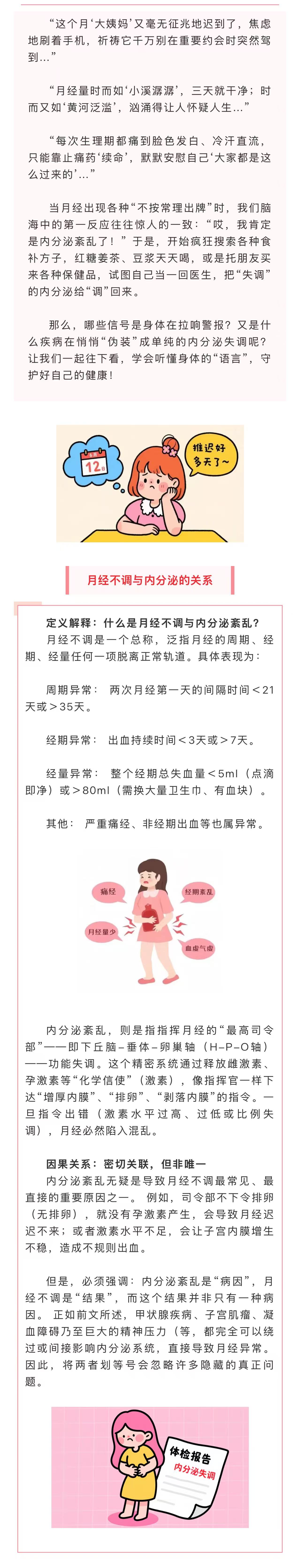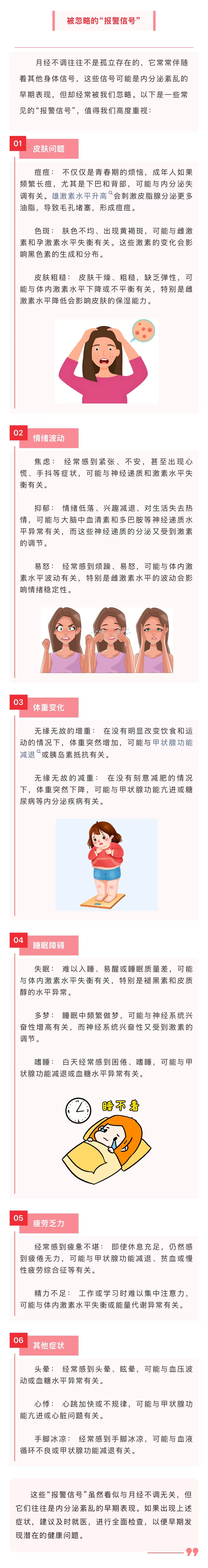 图文简介: 月经不调与内分泌紊乱之间存在着密切的联系,而身体发出的“报警信号”往往是早期健康问题的警示。希望通过本文的介绍,大家能够更加重视这些信号,及时采取行动。