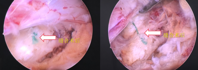 髓核除后、手术结束前,先内镜确认破口情况,再用专用器械缝合,最后内镜检查闭合效果。