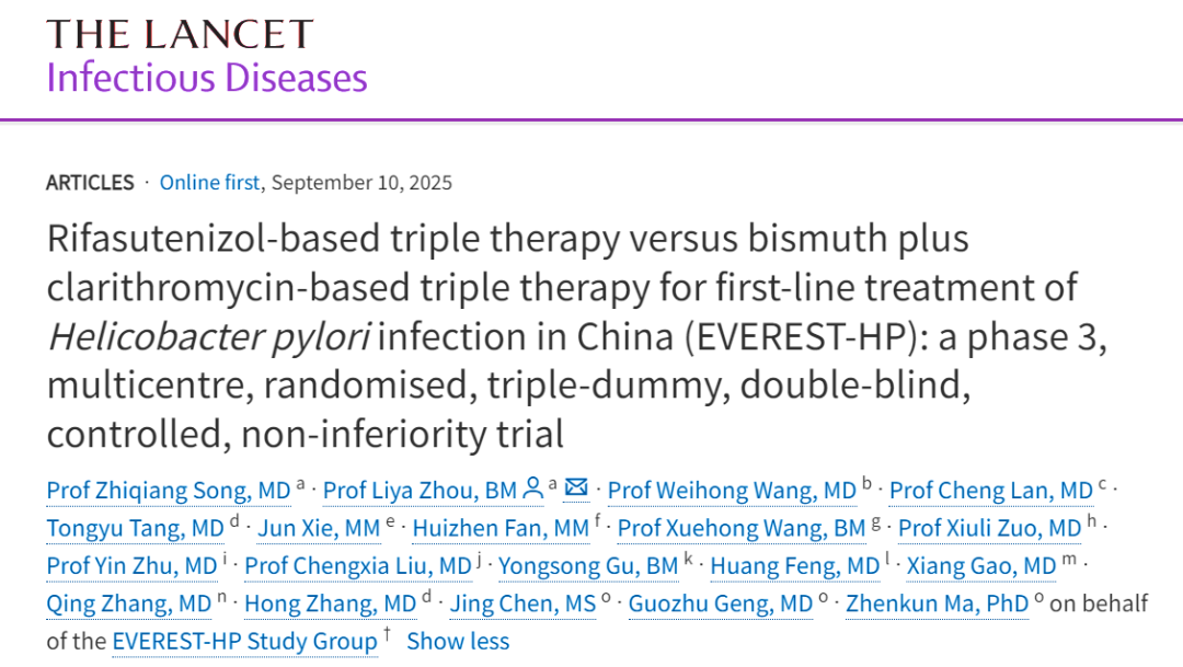 据光明日报报道,北京大学第三医院消化科教授周丽雅/宋志强团队带领全国40家相关消化疾病诊疗中心研究发现,含利福特尼唑的三联方案,为治疗幽门螺杆菌感带来了全新的选择。相关成果日前于《柳叶刀-感染病学》在线发表。