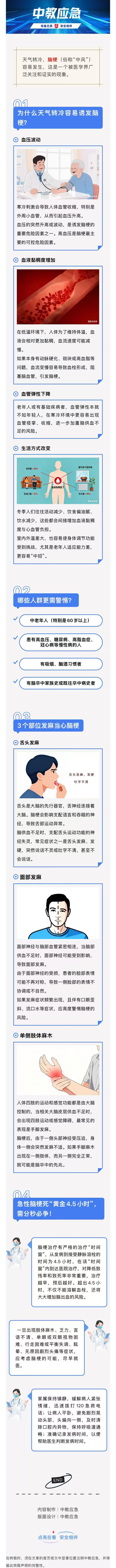 图文简介: 天气转冷易诱发脑梗,常表现为舌头发麻、面部发麻或单侧肢体麻木,高血压、老年人群需警惕。一旦出现疑似症状,应迅速就医,发病4.5小时内是静脉溶栓的黄金时间,可显著降低致残和致死风险。