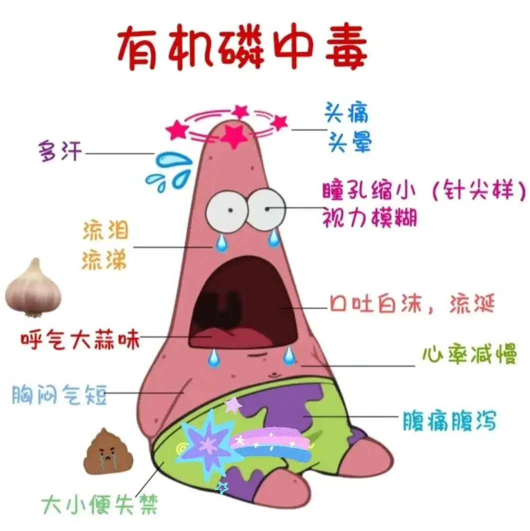 有机磷农药(如敌敌畏、乐果、甲胺磷等)广泛用于农业杀虫,由于其药效强,人们在使用过程中不小心吸入、接触皮肤或误服则可能会导致中毒。其发挥毒性的原理主要为抑制酶活性,损害人体呼吸系统、神经系统和心脑血管,严重可致命!