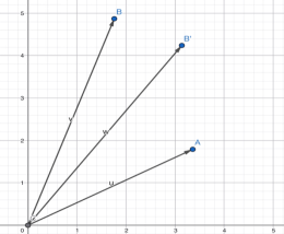 向量OA和OB的点积,大于向量OA和OB’的点积(OB和OB’等长)