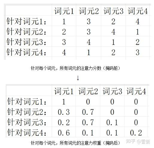 生成文字本质上是蹦出一个又一个词元,应该只根据已生成的内容来续写,而不是预先知道后面的内容。比如用于训练的文章有一句“你好吗”,如果模型能看到“你好”后面的词,就会直接给“你好”续写“吗”,这不是抄答案吗?为了遮掩答案,引进了“掩码”。在编译器阶段,词元对相关性高的词元多加注意;在解码器阶段,我们希望除此之外,词元“不注意”还没生成的词。这要通过词元的序号进行“掩码”。