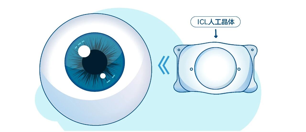 晶体植入类手术,如ICL。就像在眼睛里放入一枚定制的“隐形眼镜”:仅通过3mm左右的切口完成植入,晶体可长期留存,未来有需要也能取出或更换。