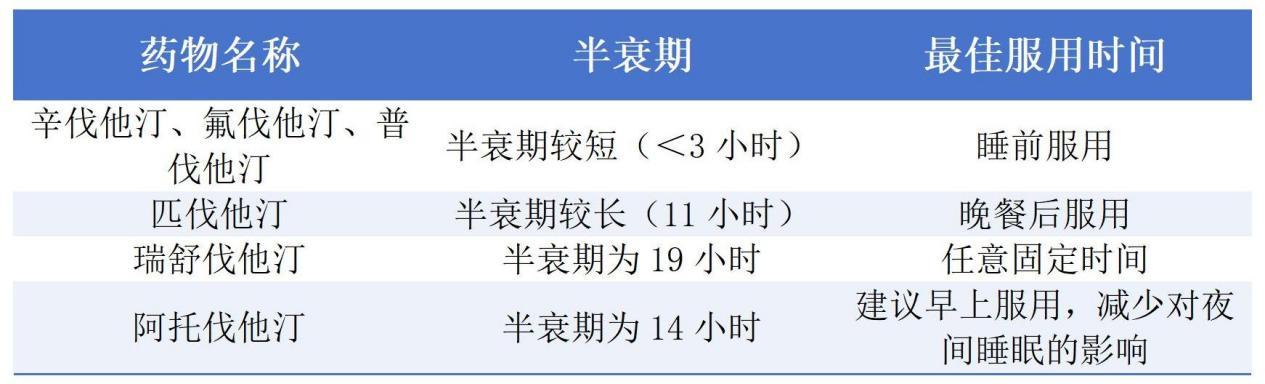 胆固醇的合成具有昼夜节律性,不同他汀的服药时间应根据半衰期确定。