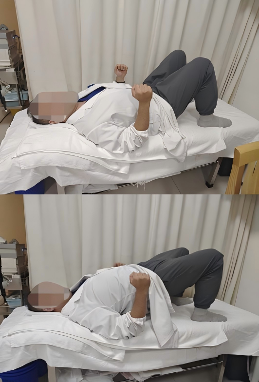 2.强化核心肌群:脊柱犹如旗杆,核心肌群就是稳定它的牵引线。推荐日常进行五点支撑(臀桥)和“小燕飞”锻炼核心肌群。