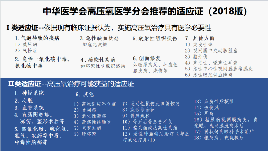 高压氧治疗是一种在高于常压(即一个标准大气压)的密闭舱体环境中,通过吸入高浓度氧气来治疗疾病的方法。根据中华医学会高压氧医学分会的推荐,该疗法适用于包括内科、外科、妇产科、儿科及康复科等超过80种疾病。它不仅适用于一氧化碳中毒的治疗,还在脑血管病、突发性聋、脑外伤、感染性疾病、放射性损伤及创面愈合不良等多种疾病的治疗中发挥重要作用。此外,高压氧还被认为具有一定的改善亚健康状态的保健作用。