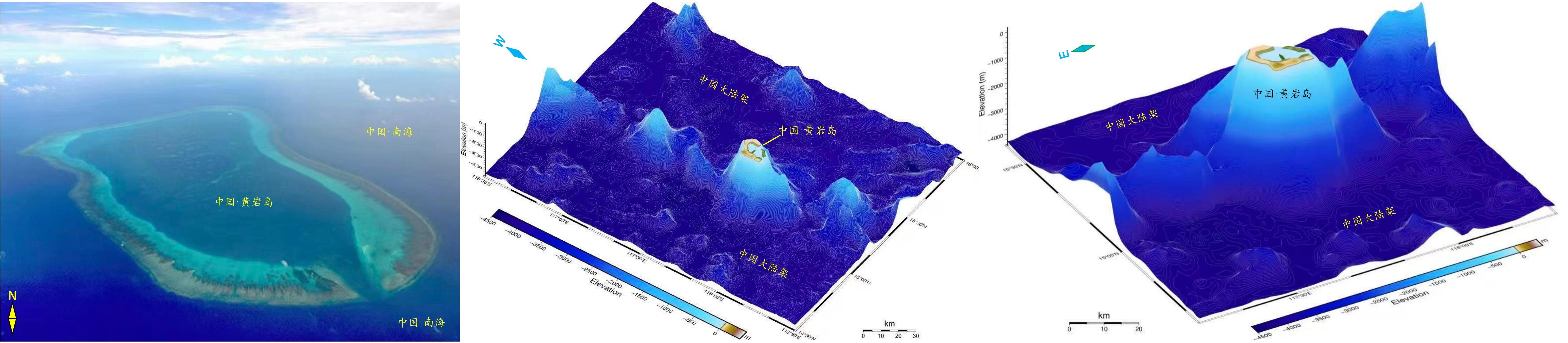 中国海南省三沙市黄岩岛俯瞰图及高程图(图均源于网络)