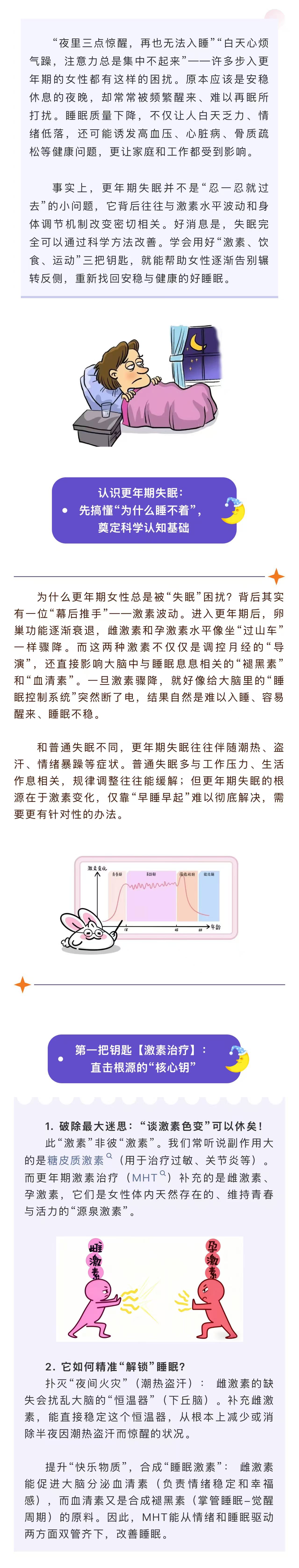 图文简介: 更年期失眠并不是“忍一忍就过去”的小问题,它背后往往与激素水平波动和身体调节机制改变密切相关。失眠可以通过科学方法改善。学会用好“激素、饮食、运动”三把钥匙,助女性逐渐告别辗转反侧,重新找回好睡眠。