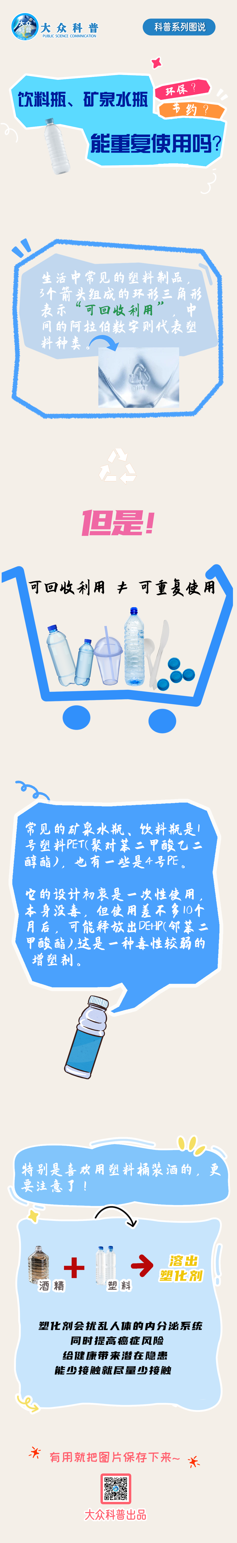 图文简介: 饮料瓶、矿泉水瓶能重复使用吗?