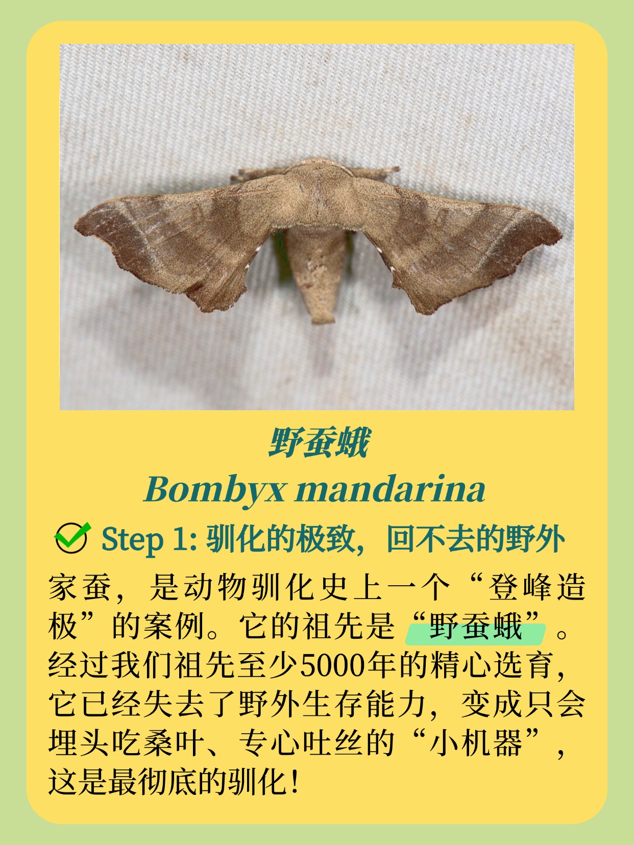 · 家蚕堪称驯化史的天花板!它的祖先是会飞的野蚕蛾,但经过至少5000年的人工培育,它已经彻底“失能”:不会飞、不会找吃的,只会埋头啃桑叶、安静吐丝。妥妥的人类专属“小机器”。