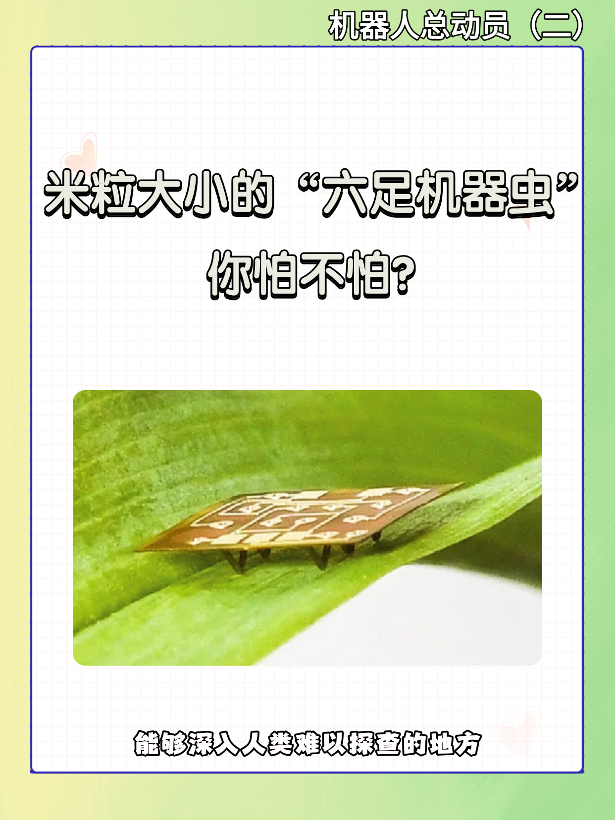 从前我们迷恋巨型机器人,如今我们又被微观世界中的“机器昆虫”所折服。或许,超微型机器人小小的身体里,同样蕴藏着改变世界的巨大潜能!