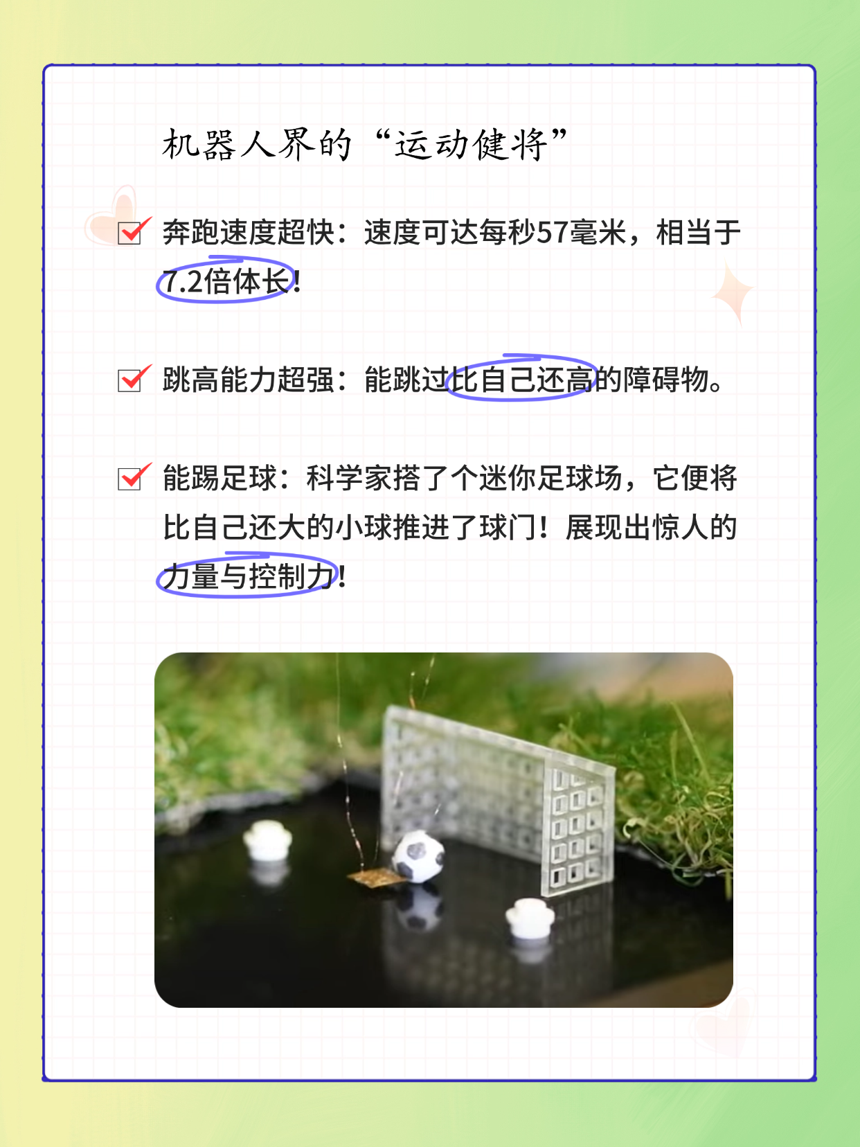 是个“足球小子”,科学家为机器人搭了个迷你足球场,它便开始一遍遍地把比自己还大的小球推进球门!这力量和控制力,绝了!