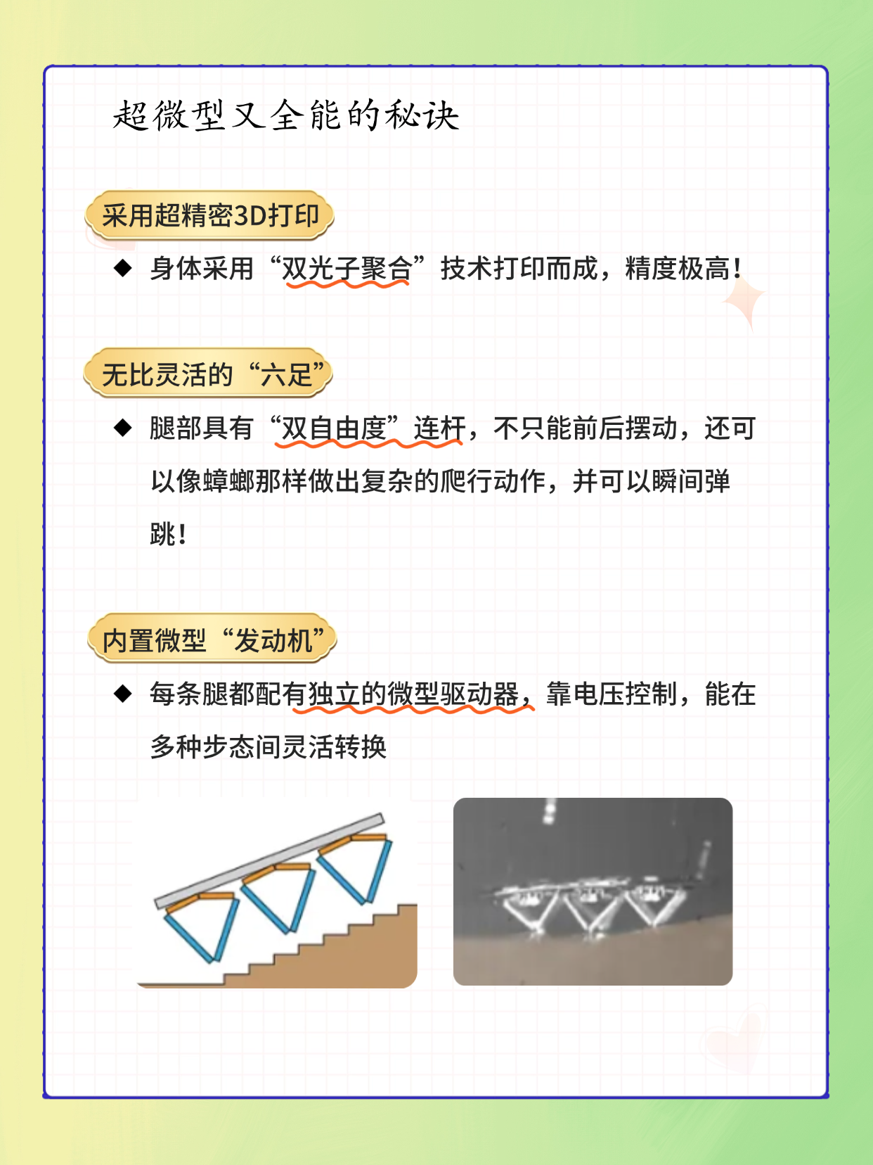 又小又全能的微型机器人靠的是什么呢?答案就藏在它的六条“黑科技”小短腿上。