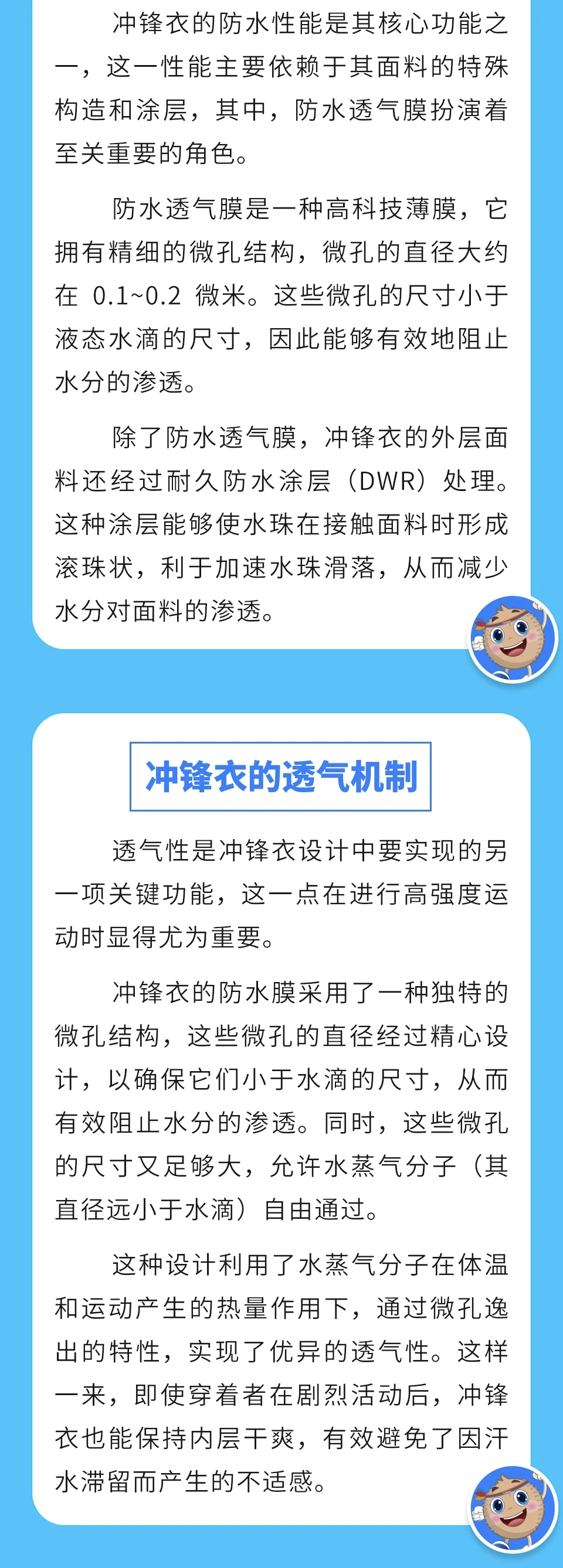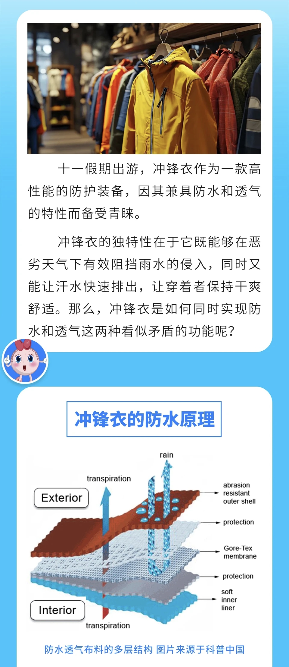 冲锋衣的独特性在于它既能够在恶劣天气下有效阻挡雨水的侵入,同时又能让汗水快速排出,让穿着者保持干爽舒适。那么,冲锋衣是如何同时实现防水和透气这两种看似矛盾的功能呢?