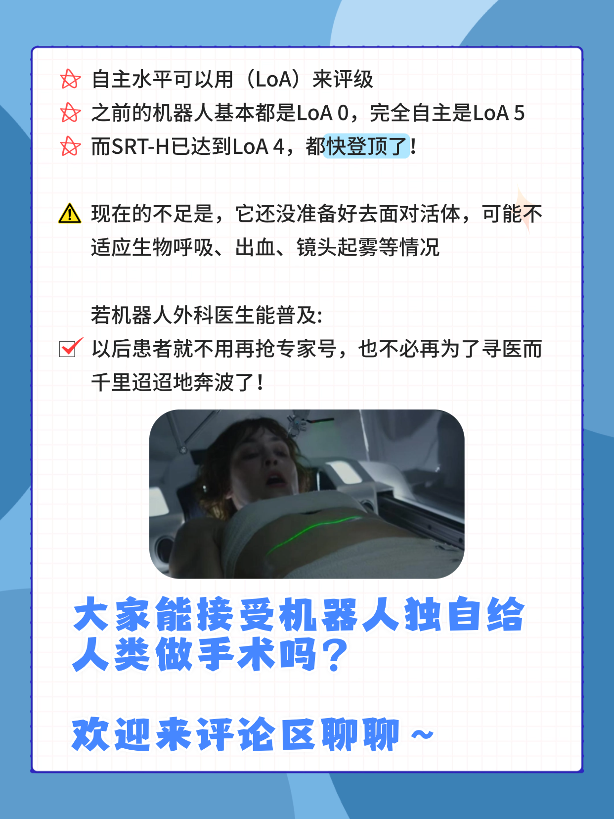 大家能接受机器人独自给人类动手术吗?欢迎来评论区聊聊~