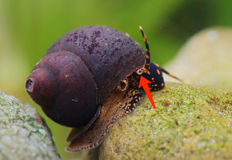 网上售卖的观赏鱼缸中的小螺,也是有眼睛的,图片截取自网店www.garnelio.de
